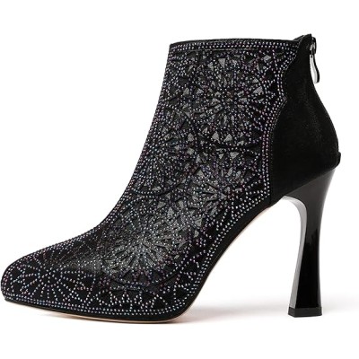 Women Rhinestone Studded Platform Bootie Crystal Diamond Ankle Boots Bling High Heel Shoes