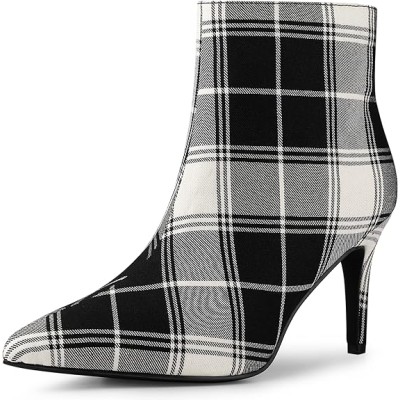 Women's Plaid Pointed Toe Side Zip Stiletto Heel Ankle Boots