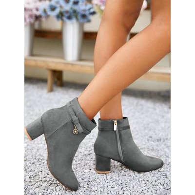 Block Heeled Winter Autumn Suede Short Boots For Women Chunky High Heel Square Toe Front Zipper Boots