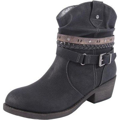 Womens Pointed Toe Ankle Boots V Cutout Chunky Mid Heel Zipper Winter Western Booties