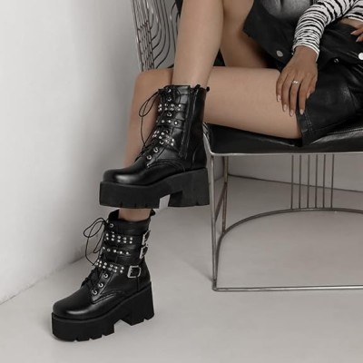 Women's Platform Chunky High Heel Lace Up Combat Boots