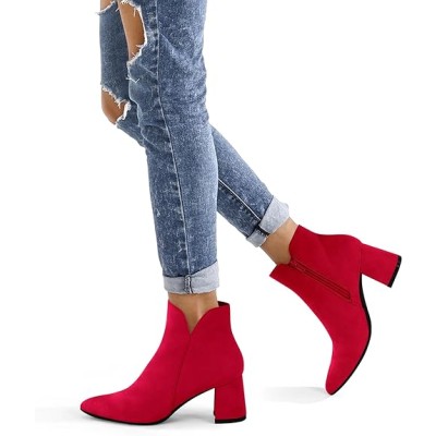 Pointed Toe Side Zip Chunky Heel Ankle Boots for Women
