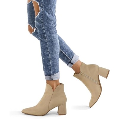 Women's Pointed Toe Boots Block Chunky Heel Ankle Booties
