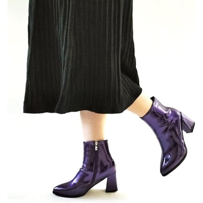 Women's Pointed toe Ankle Boots Chunky Heel Sparkly Chrome Dress Booties with Side Zipper