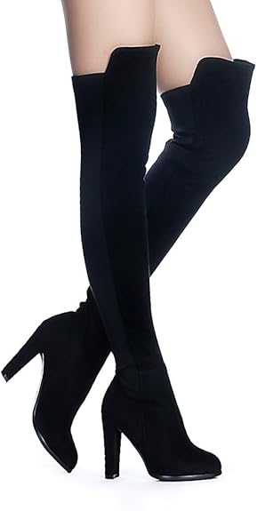 Women Faux Suede Chunky Heel Stretch Over The Knee Thigh High Boots